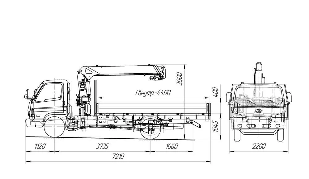 Автомобильный кран-манипулятор, оснащён модернизированной установкой UNIC 374 K (допускается установка КМУ иных моделей либо серии 370). База – шасси JAC N 75, оснащённое бортовой платформой (алюминий) с габаритами 455х220х40 см.